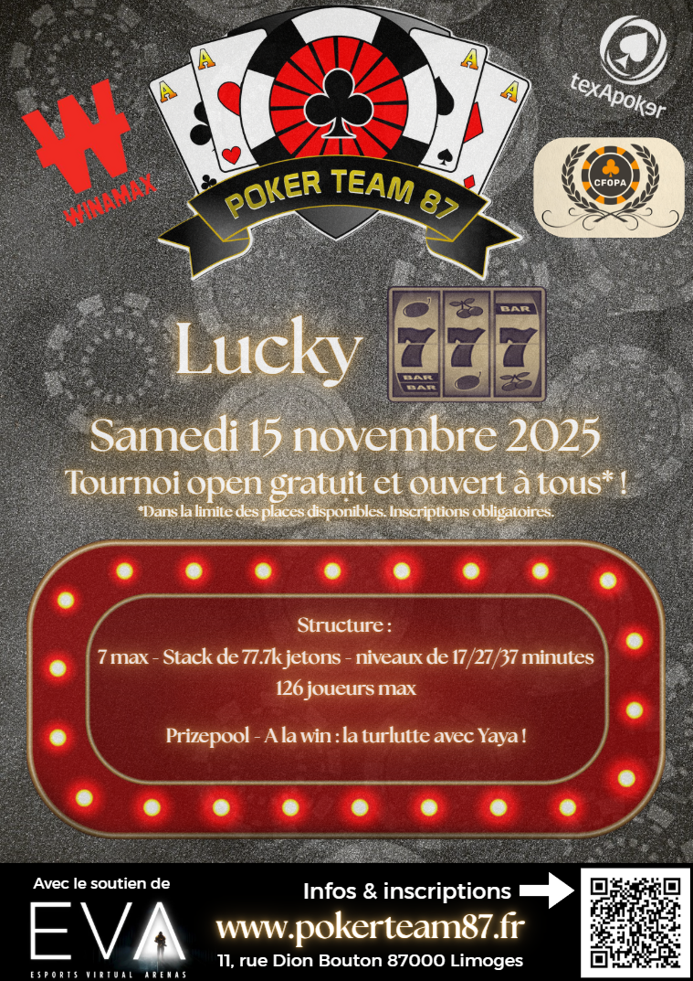 L'occasion de nous découvrir ou de revenir nous voir pour une super ambiance à la Poker Team 87 sur une journée !
